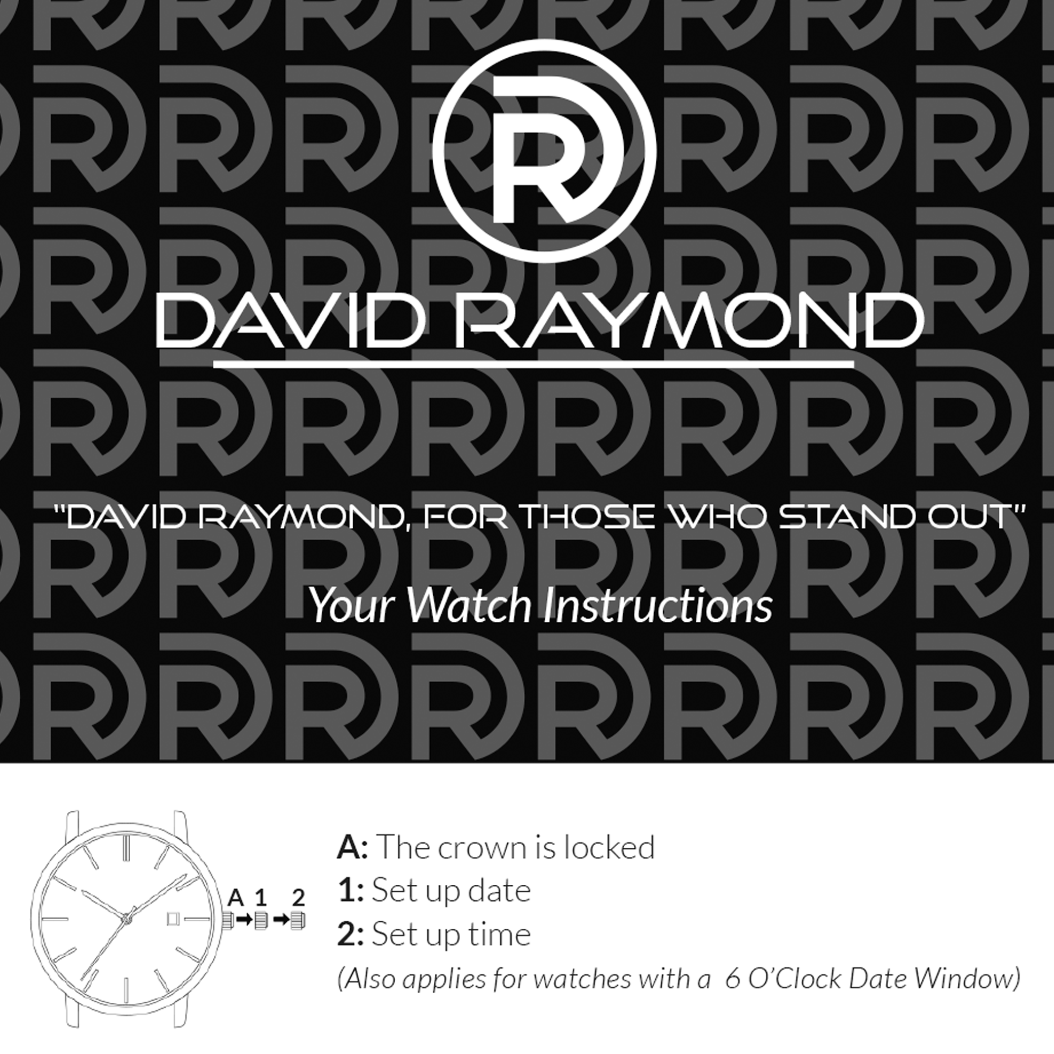 Below, you’ll find essential product instructions and care tips to help you get the most out of your David Raymond products. Our guides cover everything from setting the time and date on your watch to cleaning and maintaining each product, ensuring they remain as bold and stylish as the day you received them.